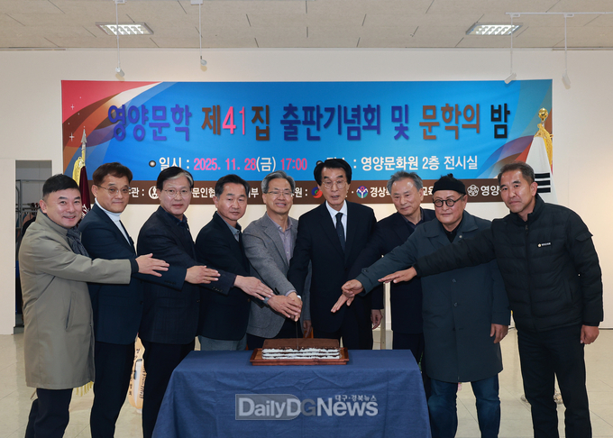 (데일리대구경북뉴스=양승미 기자)=영양군(군수 오도창)은 11월 28일(금) 오후 5시 영양문화원 2층 전시실에서 (사)한국문인협회 영양지부(회장 황태진) 주관으로 ‘영양문학 제41집 출판기념회 및 문학의 밤’ 행사를 개최하였다. 이번 행사에는 협회 회원과 지역 문학인, 주민 등이 다수 참여해 지역 문학 발전의 의미를 더했다.