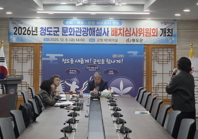 (데일리대구경북뉴스=황지현 기자)청도군(군수 김하수)은 12월 5일 청도군청 제1회의실에서 2026년 문화관광해설사 배치·결정을 위한 배치심사위원회를 개최했다.
