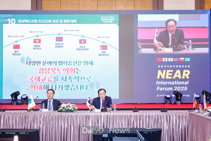 (데일리대구경북뉴스=황지현 기자)경상북도의회(의장 박성만)는 12월 9일 경주 힐튼호텔에서 지방의회간 협력방안을 주제로 개최되는 “2025 NEAR(동북아지방정부연합) 국제포럼”에 참가하여 각국 동북아 지방의회간 교류와 협력방안에 대해 논의했다.