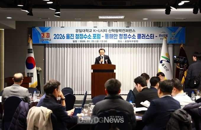 (데일리대구경북뉴스=양승미 기자)=울진군은 1월 23일 덕구온천호텔에서‘2026 울진 청정수소 포럼’을 개최하고, 동해안 청정수소 클러스터 구축과 연계한 울진 원자력수소 국가산업단지 활성화 방안을 논의했다.