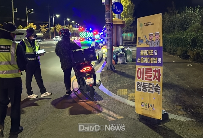 (데일리대구경북뉴스=황지현 기자)경산시(시장 조현일)는 11월 4일 이륜차 소음으로 발생하는 시민들의 생활불편을 해소하고 쾌적한 주거환경을 조성하기 위해 사동 일원에서 이륜차 소음 및 불법 개조 행위에 대한 합동점검을 실시했다.