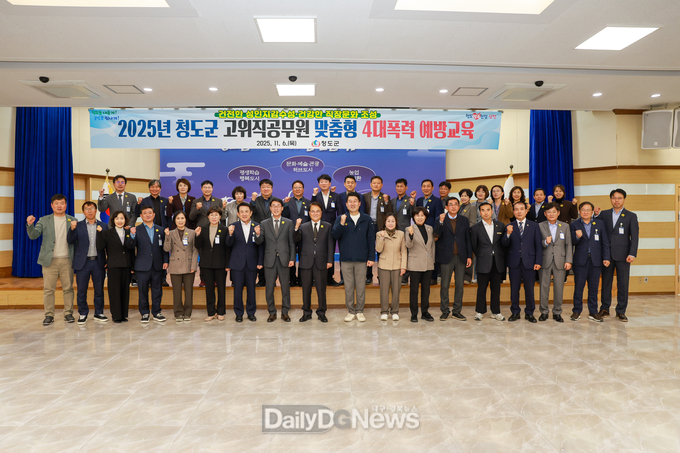 (데일리대구경북뉴스=황지현 기자)청도군(군수 김하수)은 11월 6일 김하수 청도군수, 박성곤 청도군의회 부의장 및 의원을 포함한 고위직 공무원 44명을 대상으로 맞춤형 4대폭력 예방교육을 실시했다.