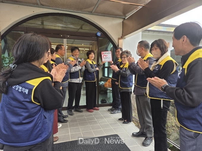 (데일리대구경북뉴스=황지현 기자)칠곡군 동명면 지역사회보장협의체(김성동·김금숙 위원장)는 11월 12일 사랑나눔사업에 꾸준히 참여하고 있는 팔공산 이재욱 호박오리를 방문해 감사의 뜻을 담은 ‘사랑나눔가게’ 현판을 전달했다.