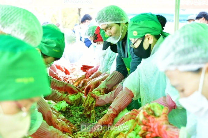 (데일리대구경북뉴스=황지현 기자)경산시새마을부녀회(회장 김임숙)는 11월 13일 새마을회관 앞마당에서 회원 120여 명이 참여한 가운데 겨울철을 대비하여 지역사회에 따뜻한 온기를 전달하기 위해 ‘2025 사랑의 김장 담그기’행사를 가졌다.
