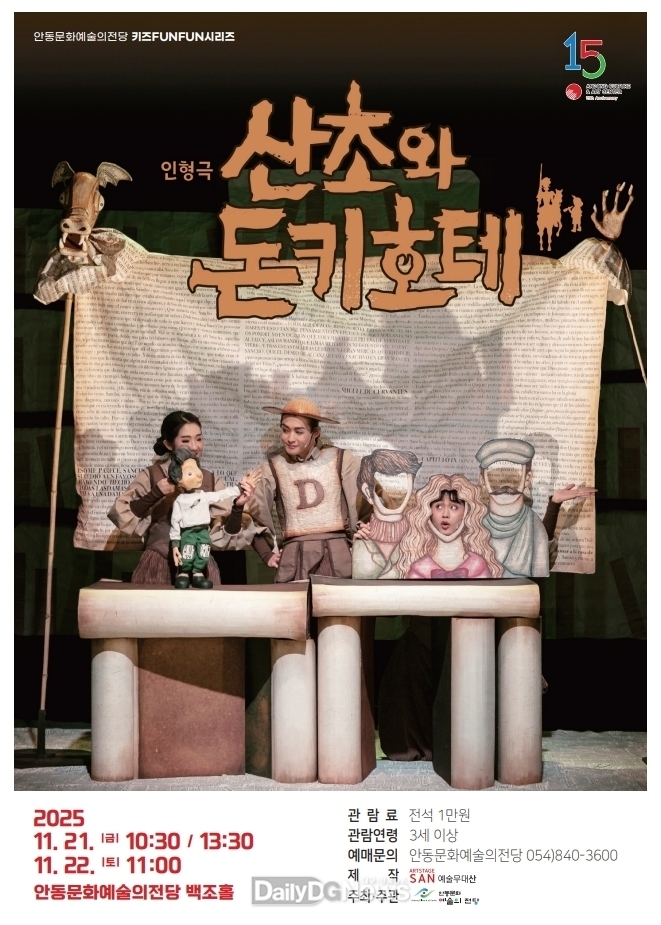 <어린이 인형극 산초와 돈키호테>는 전석 1만 원이며, 자세한 사항은 전화로 문의하거나 안동문화예술의전당 누리집(http://www.andong.go.kr/arts)에서 확인할 수 있다.