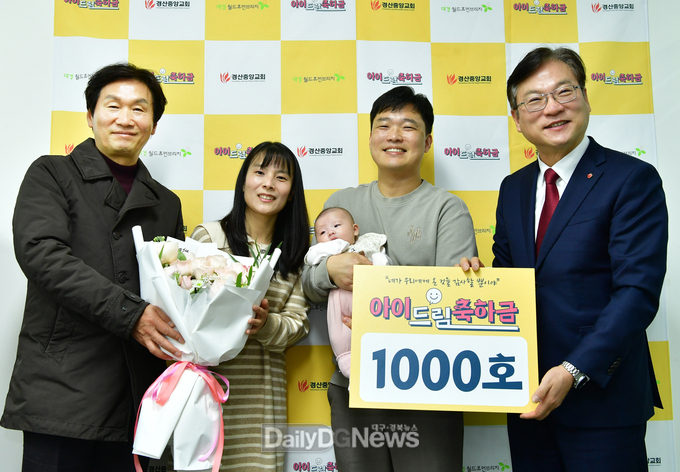 (데일리대구경북뉴스=황지현 기자)경산시(시장 조현일)는 12월 2일 경산중앙교회 내 대경월드휴먼브리지 사무실에서‘아이드림축하금 1,000호 대상자 탄생 축하 기념행사’를 가졌다.