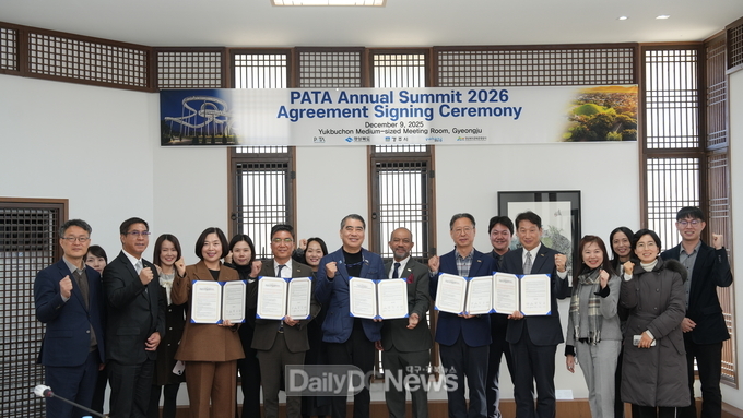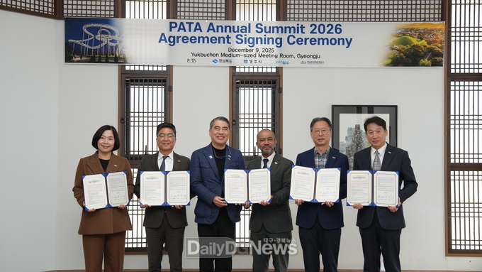 (데일리대구경북뉴스=김형만 기자)경상북도는 12월 9일 경상북도문화관광공사에서 아시아태평양관광협회(Pacific Asia Travel Association, 이하 PATA), 경주시, 포항시, 경상북도문화관광공사와 함께 2026년 PATA 연차총회의 성공적 개최를 위한 업무협약을 체결했다.