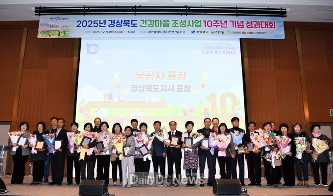 (데일리대구경북뉴스=김형만 기자)경상북도는 12월 9일 경주 라한셀렉트호텔 컨벤션 홀에서 32개 건강마을 주민과 시군 보건소 관계자와 경상북도 통합건강증진사업지원단 교수 등 600여 명이 참석한 가운데 ‘2025년 건강마을 조성사업 10주년 기념 성과대회’를 개최했다.