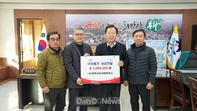 (데일리대구경북뉴스=양승미 기자)=(사)봉화군농어업회의소(회장 김주익)에서 지난 1월 8일 봉화군청을 방문하여 성금 300만원을 기탁하였다.
