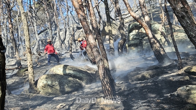 산림청 관계자에 따르면 남부지방산림청은 산불이 주불 진화된 상태이나 현장에 인력을 잔류 배치하여 뒷불감시 체계를 유지 중이며, 경찰 등 관계 기관의 산불 발생 원인 조사에도 적극 지원했다.