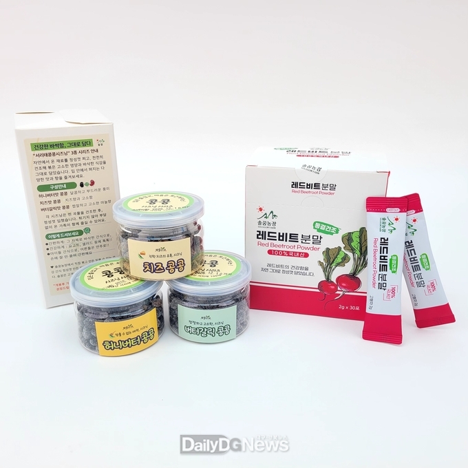 가공의 첫 결과물은 2024년 1월 출시한 ‘레드비트분말’이다. 예천군 농산물가공기술 지원센터의 기술 지원을 받아 동결건조 공법을 적용해 원물의 색감과 영양을 최대한 유지했으며, 기존 비트즙이 가진 섭취의 불편함을 개선한 것이 특징이다.