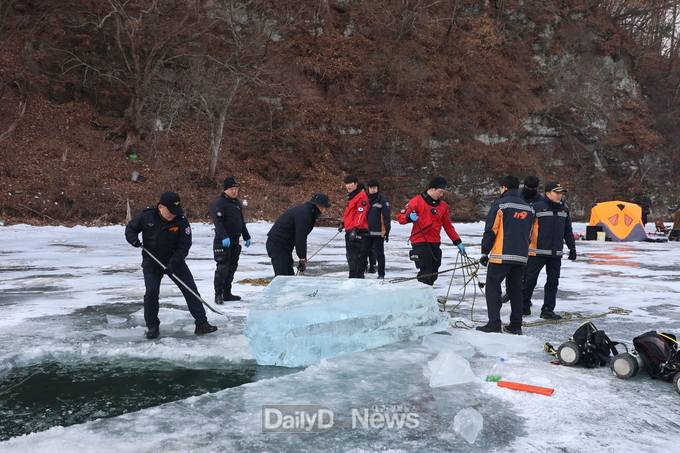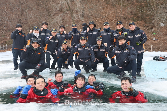 주요 훈련 내용으로는 △빙상 및 수중 탐색을 통한 인명구조 △로프를 활용한 수중 탐색 및 수신호 훈련 △요구조자 인양 절차 숙달 △겨울철 수중 극한 환경 적응 및 안전사고 예방 교육 등이 포함됐다.