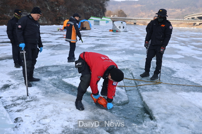 특히 얼음이 깨져 요구조자가 수중에 빠진 상황을 가정한 훈련을 통해, 실제 사고 발생 시 신속하고 안전한 구조가 가능하도록 구조 절차를 점검하고 현장 대응 능력을 집중적으로 향상시켰다.