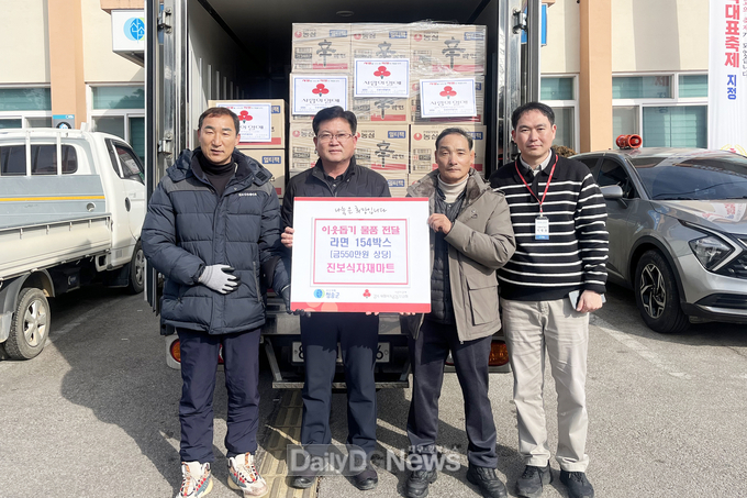 (데일리대구경북뉴스=양승미 기자)=청송군은 진보면에 위치한 진보식자재마트(대표 박건)가 지난 4일 설 명절을 맞아 지역 소외계층을 위해 550만 원 상당의 라면 154상자를 기탁했다고 밝혔다.
