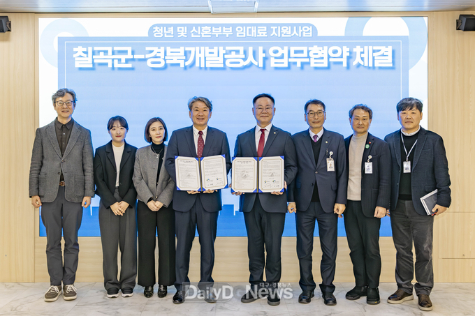 칠곡군은 2월 5일 김재욱 칠곡군수와 이재혁 경상북도개발공사 사장이 참석한 가운데, 청년 및 신혼부부의 안정적인 정주 여건 조성을 위한 업무협약을 체결했다.