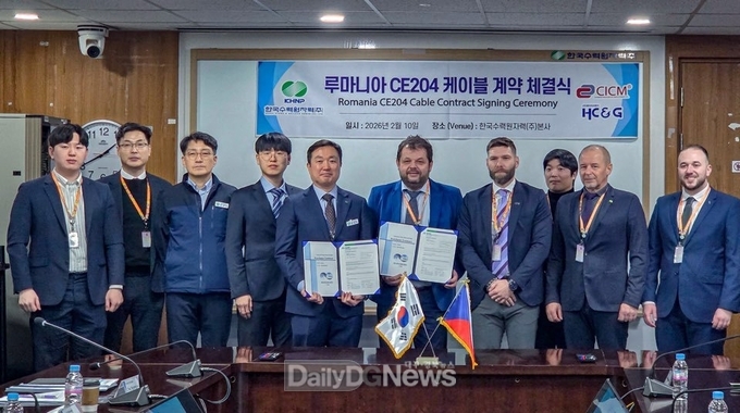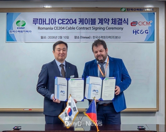 (데일리대구경북뉴스=황지현 기자)한국수력원자력(이하 한수원)이 2월 10일 한수원 본사에서 체코의 케이블 전문기업인 CICM과 루마니아 삼중수소제거설비 건설사업 케이블 기자재 공급 계약 체결식을 개최했다.