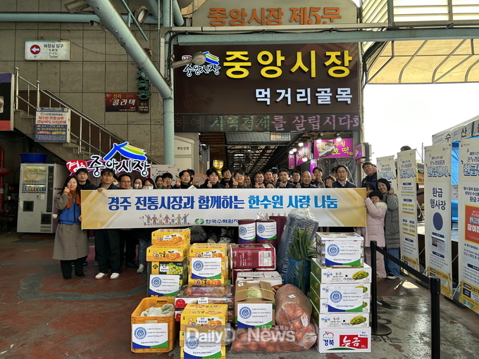(데일리대구경북뉴스=황지현 기자)한국수력원자력(이하 한수원)이 설 명절을 앞둔 2월 11일 경주 성동시장과 중앙시장에서 지역경제 활성화와 이웃 나눔을 실천하기 위한 ‘전통시장 장보기 행사’를 시행했다.