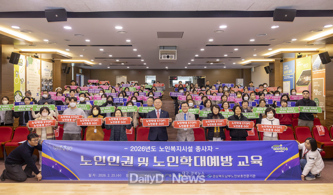 (데일리대구경북뉴스=황지현 기자)칠곡군은 지난 2월 25일 교육문화회관 평생학습관에서 관내 노인복지시설 47개소 종사자 130여명을 대상으로 ‘2026년도 사회복지시설 종사자 노인인권 및 노인학대예방 교육’을 실시했다.
