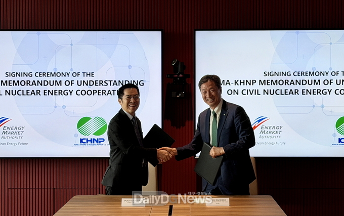 (데일리대구경북뉴스=황지현 기자)한국수력원자력(이하 한수원)이 3월 1일 싱가포르 현지에서 싱가포르 에너지시장청(Energy Market Authority, 이하 EMA)과 소형모듈원자로(Small Modular Reactor, 이하 SMR) 분야의 기술 교류 및 협력 강화를 위한 양해각서(MOU)를 체결했다.