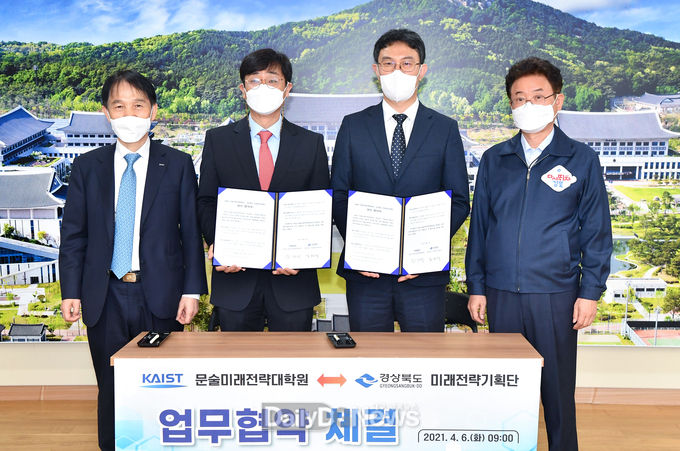 (데일리대구경북뉴스=김형만 기자)경상북도는 향후 미래사회를 예측 대응함은 물론 지역의 중장기 비전과 전략을 제시하기 위해 4월 6일 경북도청에서 카이스트와 미래전략 수립을 위한 상호 업무협약을 체결했다.