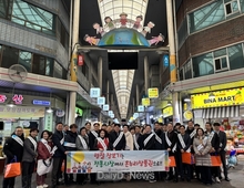 (데일리대구경북뉴스=이준호 기자) 중소벤처기업부(장관 한성숙) 대구‧경북지방중소벤처기업청(청장 정기환, 이하 대경중기청)은 설 명절을 앞두고 2월 11일 대구시 달서구 와룡 시장을 방문해 전통시장 장보기를 진행했다고 밝혔다. 대경중기청과 소상공인시장진흥공단 대구경북지역본부, 중소벤처기업진흥공단 대구지역본부, 신용보증기금 대구경북영업본부, 기술보증기금 대구경북지역본부, (재)대구테크노파크, (재)대구신용보증재단, 중소기업중앙회 대구지역본부 등 7개 유관기관과 (사)대구경북첨단벤처기업연합회, (사)한국경영혁신중소기업협회 대구경북연합회, 한국여성벤처협회 대구경북지회, 한국여성경제인협회 대구지회, (사)경상북도여성기업인협의회 등 5개 협‧단체 등 13개 기관 관계자 50여 명이 참여했다. 대경중기청은 장보기 행사를 통해 구매한 물품을 달서구학산종합사회 복지관에 기부해 주변의 어려운 이웃을 돌아보고 명절의 따뜻한 정을 나누는 시간도 함께 가졌다. 정기환 대경중기청장은 “설 명절을 맞아 전통시장에 활력을 불어넣고자 장보기 행사를 진행했다.”며 “차례용품을 준비할 때 온누리상품권으로 전통시장을 많이 이용하여 상인들에게 힘이 되기를 바란다.”고 말했다.