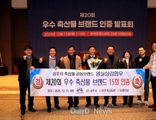 (데일리대구경북뉴스=황지현 기자)상주시는 12월 15일 한국프레스센터에서 열린 농림축산식품부가 후원하고 (사)소비자시민모임에서 주관하는 ‘제20회 우수축산물브랜드 인증발표회’에서 상주시 축산물공동브랜드 ‘명실상감한우’가 우수축산물 브랜드 인증을 받음으로써, 2009년부터 2026년까지 총 15회 우수축산물 브랜드 인증을 획득하게 됐다. ‘우수축산물 브랜드 인증’은 (사)소비자시민모임이 2004년부터 매년 까다로운 기준에 맞게 엄격히 선정하여 인증을 부여하는 제도로써, 전문가 및 교수로 이루어진 인증심사단의 꼼꼼한 서류 및 현장 실사를 통해서만 인증받을 수 있으며, ‘명실상감한우’는 상주시의 깨끗한 공기와 맑은 물 등 천혜의 환경속에서 무기질과 비타민이 풍부한 감 껍질 사료를 먹고 자란 상주시 명품 한우브랜드로 이번 우수축산물 브랜드 인증을 통해 소비자들에게 보다 안전하고 위생적인 고품질 축산물을 선택할 수 있는 기준을 제시하게 됐다. 현재, 상주축산농협은 아랍에미리트 두바이에 고품질 ‘명실상감한우’ 현지 수출 협약체결 후 납품하고 있는 상황이며, 특히, 11월 19일 아랍에미리트(UAE)를 국빈 방문 중인 김혜경 여사가 할랄 K-푸드 홍보 행사에서 ‘명실상감