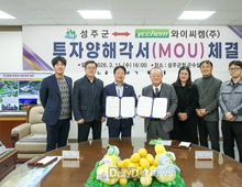 (데일리대구경북뉴스=신명곤 기자)성주군은 3월 11일 군수실에서 와이씨켐㈜과 투자양해각서(MOU)를 체결하고, 투자사업의 원활한 추진을 위한 상호 협력에 나섰다. 이날 체결식에는 성주군관계자와 이성일 와이씨켐㈜ 대표이사 등이 참석했으며, 투자계획 발표, 양해각서 서명, 기념촬영 및 환담 순으로 진행됐다. 이번 투자는 와이씨켐㈜의 생산 역량 확대를 위한 제5공장 증설 사업으로, 총 164억 원 규모다. 부지 매입을 제외한 건설 및 설비 분야에 138억 원을 투자하고, 2028년까지 20명 이상의 신규 인력을 채용해 지역 일자리 창출에 앞장서기로 했다. 와이씨켐㈜은 성주군에 본사를 둔 반도체 소재 분야 중견기업으로, 포토레지스트와 반도체 웨이퍼 세정제 등을 주요 제품으로 생산하고 있다. 성주군은 이번 협약을 통해 지역 내 대규모 투자 유치에 따른 지역경제 활성화와 신규 일자리 창출은 물론, 생산기반 확충을 통한 지역 산업 경쟁력 강화 및 세수 증대 효과를 기대하고 있다. 성주군 관계자는 “이번 투자양해각서 체결은 관내 기업의 안정적인 투자 확대와 지역 산업 경쟁력 강화를 위한 의미 있는 계기”라며 “기업의 투자사업이 차질 없이 추진될 수 있도록 필요한 행정 지원