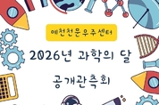 (데일리대구경북뉴스=황지현 기자)경북의 대표적 과학문화시설인 예천천문우주센터가 4월 18일 오후 7시부터 9시까지 ‘2026년 과학의 달 공개관측회’를 개최할 예정이다. 매년 4월은 과학기술의 중요성을 되새기고 국민의 과학적 관심을 높이기 위해 지정된 ‘과학의 달’이며, 특히 4월 21일 ‘과학의 날’은 과학기술 진흥과 발전을 기념하는 날이다. 이번 2026년 과학의 달 공개관측회는 이러한 의미를 바탕으로 누구나 쉽고 흥미롭게 천문을 접할 수 있도록 기획됐다. 행사는 4월 18일 오후 7시 플라네타리움(돔 영상실) 우주 영상 관람을 시작으로 오후 8시부터는 천문대 관측실에서 공개관측회가 진행되며, 대형 반사망원경 등 다양한 장비를 활용해 목성과 금성 등 4월의 밤하늘을 직접 관측할 수 있다. 이번 공개관측회는 선착순 25명을 네이버 예약을 통해 모집하며, 천체관측은 기상 상황에 따라 제한되거나 다른 프로그램으로 변경될 수 있다. 예천천문우주센터 관계자는 “과학의 달을 맞아 준비한 이번 행사가 많은 분들께 과학을 보다 가깝게 느끼는 계기가 되길 바란다”며 “앞으로도 다양한 체험형 프로그램을 통해 천문과 과학을 알리는 데 힘쓰겠다”고 밝혔다.