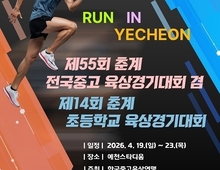 (데일리대구경북뉴스=황지현 기자)예천군은 4월 19일부터 23일까지 닷새간 예천스타디움에서 ‘제55회 춘계 전국 중·고 육상경기대회’ 및 ‘제14회 춘계 전국초등학교 육상경기대’ 개최할 예정이다. 한국중·고육상연맹이 주최하는 이번 대회는 초등부 166팀, 중등부 218팀, 고등부 89팀 등 전국 각지에서 참가한 473팀의 선수단과 심판·임원 등 대회 관계자까지 총 4,000여 명이 육상 열기로 경기장을 뜨겁게 달굴 예정이다. 춘계 전국 초·중·고 육상대회는 한국 육상의 토대를 반세기 넘게 지켜온 최고 권위와 전통의 대회로, ‘026 필리핀 오픈 국제육상경기선수권대회’와 ‘한·중·일 주니어 육상대회’ 발전을 겸해 개최되어 대회 중요도와 관심도를 한 차원 높였다. 특히 이번 대회에는 필리핀 육상연맹 선발 주니어대표팀 선수단 13명이 참가하는 ‘미니 국제대회’의 성격으로 치러지며 국내 선수들의 국제무대 경쟁력 향상에도 더없이 좋은 기회가 될 전망이다. 이번 대회는 중·고등부 경기가 열리는 19일부터 21일까지 3일간 한국중고육상연맹 유튜브 채널을 통해 생중계되며, 주요 경기는 다시보기도 가능하다. 한편, 대규모 선수단이 예천을 방문함에 따라 숙박 및 요식업소 등